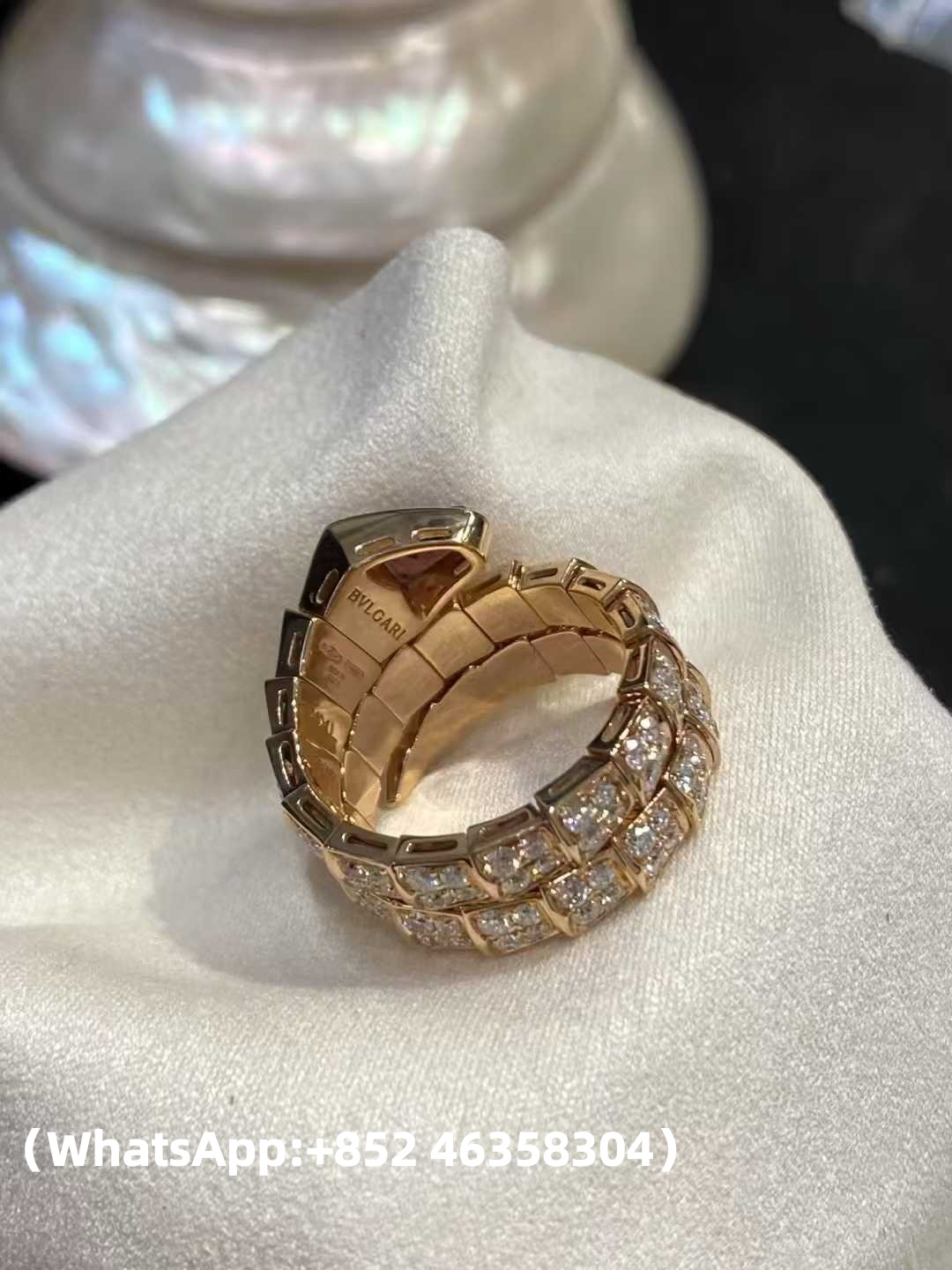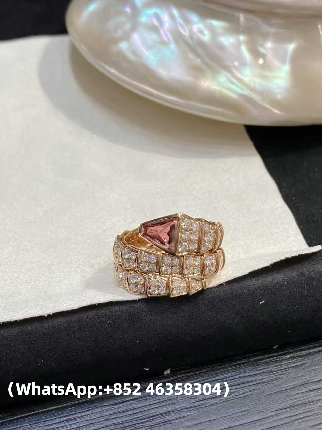 Custom Bvlgari Serpanti Rubellite Diamond Double Coil Ring Solid 18k Rose Gold